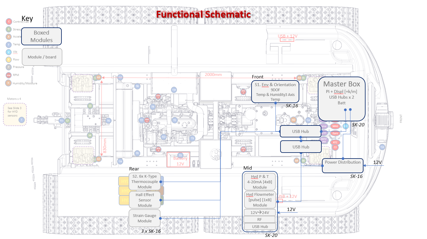 The challenge was quite a big one; to fully instrument and collect performance data on two prototype vehicles using something over 100 data channels on one vehicle, 60 on the other, polled at intervals between 2 and 1000 Hz for test sequences in excess of 8 hrs in extremes of temperature. We couldn’t find anything that would do the job at a sensible price so we designed and commissioned our own.