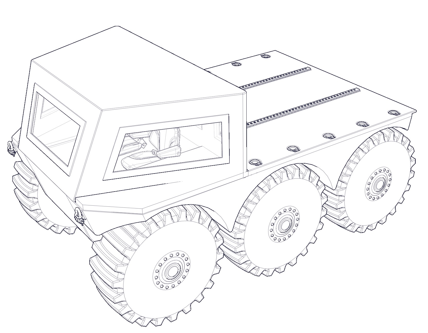 Physical modification to incorporate any level of armoured protection is a relatively straightforward matter for the Trident range. However the key question is; how much is enough and what level of extreme-terrain manoeuvrability should we be prepared to sacrifice? We have concluded that protection to NATO STANAG 4569 Threat Level 3 would be desirable. We can achieve this without compromise to performance on soft ground, snow and with an acceptable reduction in amphibious load-carrying capability.